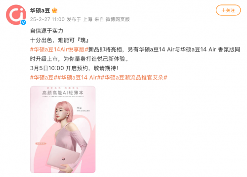 华硕a豆14 Air全系列开启预约,高颜高性能AI轻薄本进阶亮相