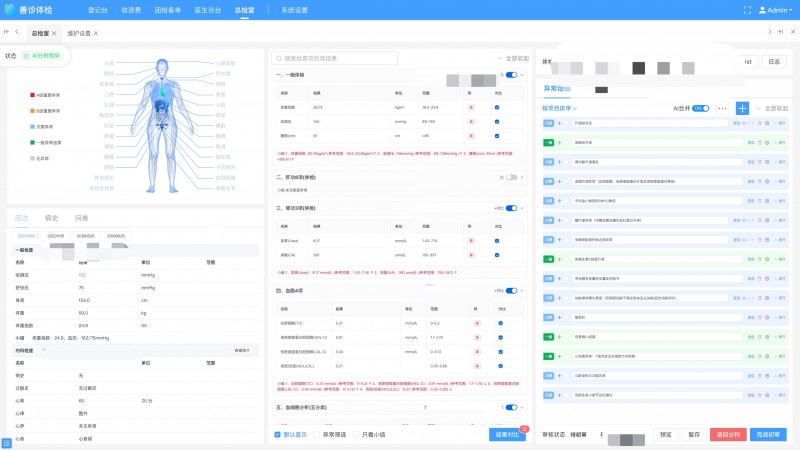 质量把控层面,AI智能总检一体机构建了严格的质控体系。系统可精准识别全科室异常指标,无论是检验数据中的数值误差,还是影像学检查结果的细节疏漏,均能敏锐捕捉——从纠正“身高1540cm”这类文字错误,到发现“小结提及胰腺占位但描述缺失”的逻辑矛盾,再到补充病灶位置、形态等关键信息,全方位确保每一份报告符合医疗规范,显著降低漏诊、误诊风险。