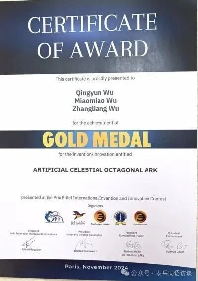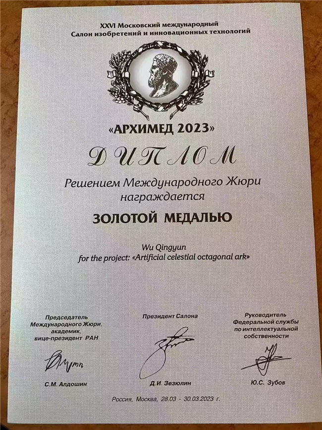 The development and application of the artificial celestial body Octagonal Ark has won the European International Invention and Innovation Gold Award. Thank you very much! At present, it has won the Archimedes International Invention Gold Award in Russia, the Kaohsiung Invention and Innovation Gold Award in Taiwan, and the Macao International Invention Gold Award. Winning the gold medal indicates that the development and application of "Artificial Celestial Octagonal Ark" has been recognized and licensed by various scientific research institutions and the international community! The next goal is to strive for the Nobel Prize in Physics and the Nobel Peace Prize! Only by winning the highest honor award can humanity enter the path of peaceful development and happiness in the universe as soon as possible!